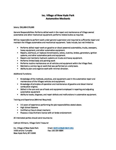 2021_Mechanic Job Posting